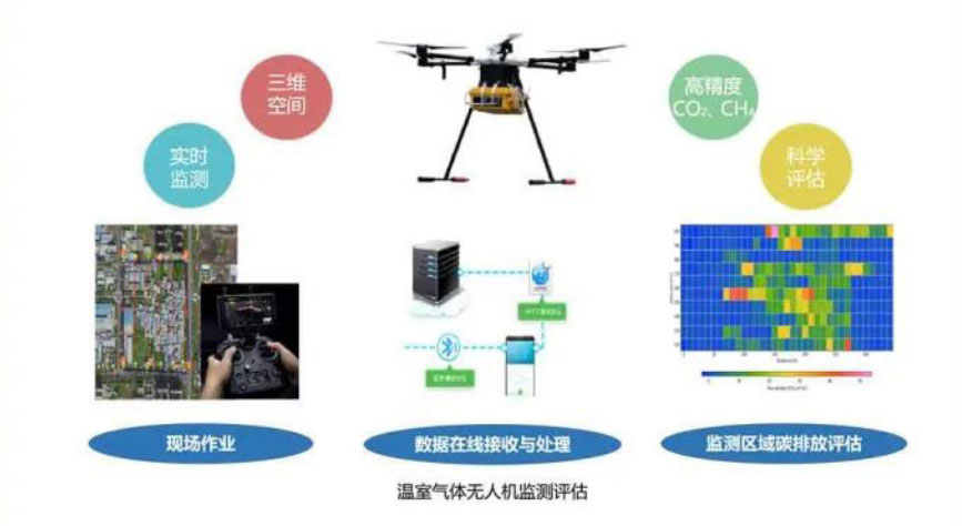 衛星、無人機、走航、地基遙感監測是獲取大氣中溫室氣體濃度及其排放來源的重要技術手段。
